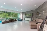 Casa em condomínio fechado com 3 dormitórios, sendo 2 suítes, incluindo uma máster com hidromassagem. O imóvel possui 3 salas (visita, estar e jantar) e 4 banheiros. No subsolo, há um espaço para adega e um quartinho para armazenamento. A área de lazer conta com uma fabulosa piscina aquecida, uma jacuzzi para 6 pessoas e um espaço gourmet com churrasqueira e fogão a lenha.
