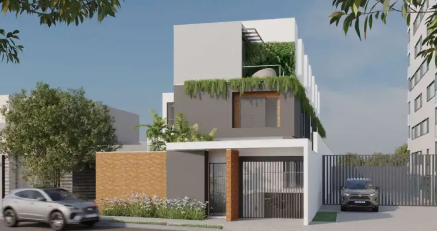 Triplex moderno, de 145m², com 3 suítes, suíte master com um rooftop, 3 banheiros, mais 1 lavabo, living bem iluminado e 2 vagas de garagem. Sistema de segurança completo e inteligente