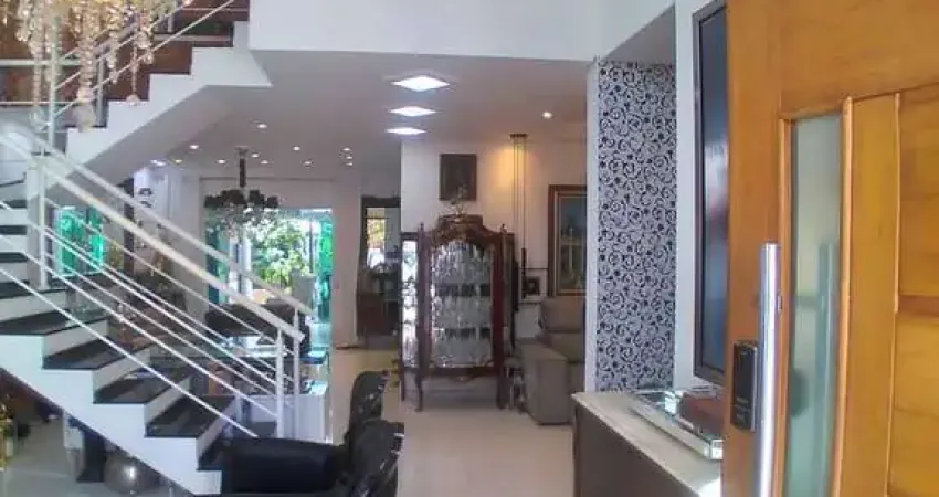 Piso Inferior: Garagem para 4 carros (2 cobertas), porta de entrada com fechadura eletrônica, ampla sala 2 ambientes com pé direito alto e ar condicionado de 18.000 btus, lavabo, 1 sala íntima (reversível para um 4° dormitório), integrada com a cozinha estilo americana (com cooktop, gabinetes e despesa), amplo espaço gourmet com churrasqueira, gabinetes, cooktop, wc social, ampla área de serviço, 2 áreas de despejo e amplo quintal.