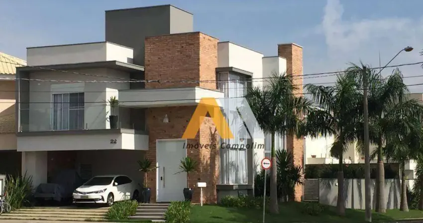 Linda casa no Condomínio Residencial Royal Park, localizado na avenida principal e de frente para o lago. Sobrado com 3 suítes, sendo a suíte principal com closet modulado, banheira jacuzzi para duas pessoas e demais banheiros com modulados. Todas as sacadas com linda vista para o lago. Sistema de aquecimentos solar e pressurização em toda a rede, infraestrutura para ar condicionado em toda casa, escritório com modulados. Sala de visita com lareira e hall de entrada com pé direito duplo. Sala de jantar e tv integradas, cozinha modulada com ilha e coifa central, lavanderia com modulados e quintal privativo. Área gourmet com churrasqueira, forno de pizza e ilha. Banheiro externo. Piscina de pastilha cerâmica com aquecimento solar. Lindo paisagismo interno e externo. Condomínio com portaria 24 horas, rondas motorizadas, câmeras de monitoramento. Características das Áreas Comuns: Área de Lazer, Campo de Futebol, Churrasqueira, Estacionamento Visitantes, Jardim, Piscina, Playground, Quadra de Tênis, Quadra Poliesportiva, feira, espaço fitness,