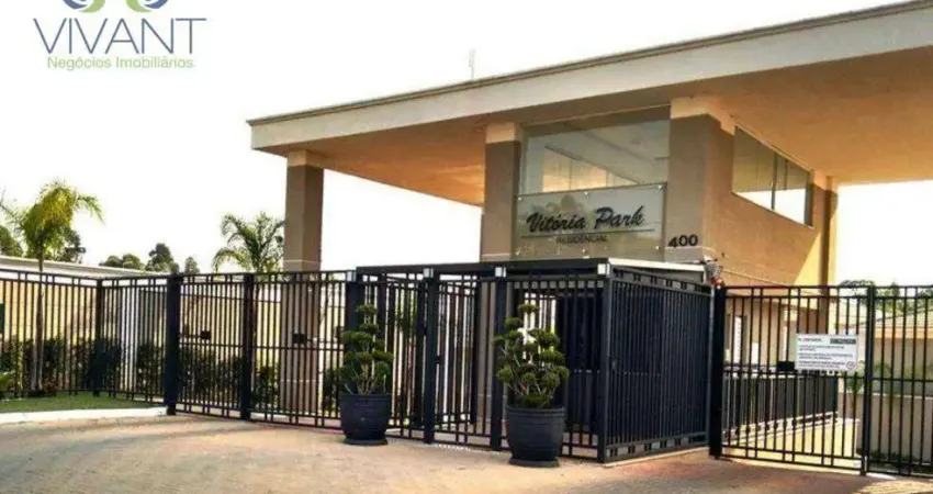 Sobrado residencial no CONDOMÍNIO VITÓRIA PARK de 123 m² de área construída, com 3 dormitórios todos com ar condicionado (sendo 1 suíte máster), sala 2 ambientes com ar condicionado ,escritório cozinha planejada, 1 banheiros, lavabo, área gourmet com churrasqueira, piso de porcelanato e laminado, 3 vagas de garagem descobertas;