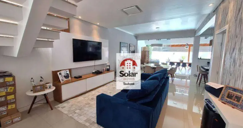Sobrado de alto padrão com cômodos amplos e arejados, equipado com planejados, dormitórios com closet e sacada, ambientes integrados e climatizados com ar-condicionado, e com bastante iluminação natural, área gourmet completa com piscina e churrasqueira.