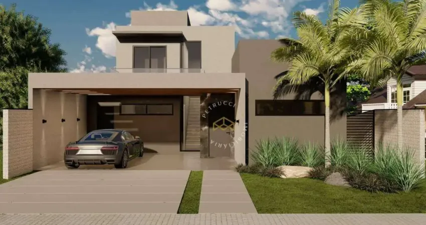 Casa em construção com previsão de entrega para fevereiro de 2026. No piso térreo, conta com garagem coberta para 2 carros e 2 vagas descobertas, sala de estar, sala de jantar, sala de TV, lavabo, cozinha, lavanderia, despensa e 3 suíte com closet. A área externa possui piscina, ideal para momentos de lazer em família.