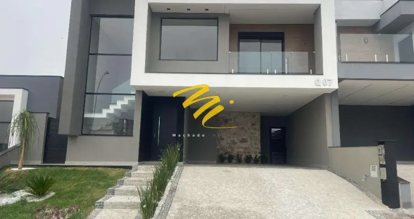 Com ambientes amplos, arejados e iluminados, esse lindo sobrado recém construído, com terreno de 300 metros e 231 de construção, possui uma ampla sala para 2 ambientes com pé direito alto, lavabo, escritório, cozinha em conceito aberto, despensa, área de serviço, 3 suítes, na master closet e sacada, churrasqueira coberta, piscina quintal, 4 vagas sendo 2 cobertas. Imóvel com acabamento impecável, materiais de primeira, preparada para energia solar, possui fotovoltaica e tomadas para carro elétrico. Condomínio tranquilo, bem localizado, com fácil acesso para rodovias e ao comércio em geral, portaria e segurança 24 horas, piscina, playground e salão de festa. Agende sua visita!!