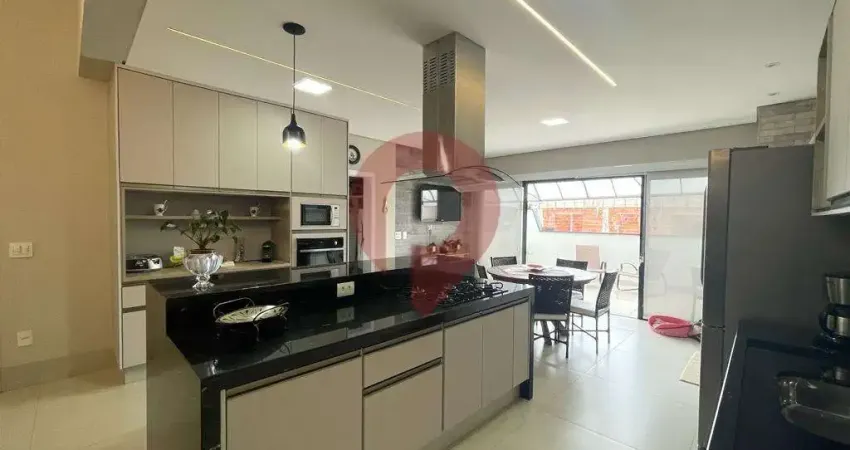 Com um acabamento premium, a cozinha é equipada com ilha, acabamento em mármore e piso de porcelanato, proporcionando praticidade e elegância.