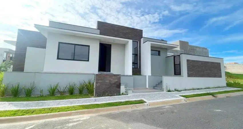 Esta linda casa térrea é recém construída e conta com 3 suítes, sala ampla, pé direito duplo, sala de estar e jantar integradas com a cozinha, lavabo, espaço gourmet e piscina.