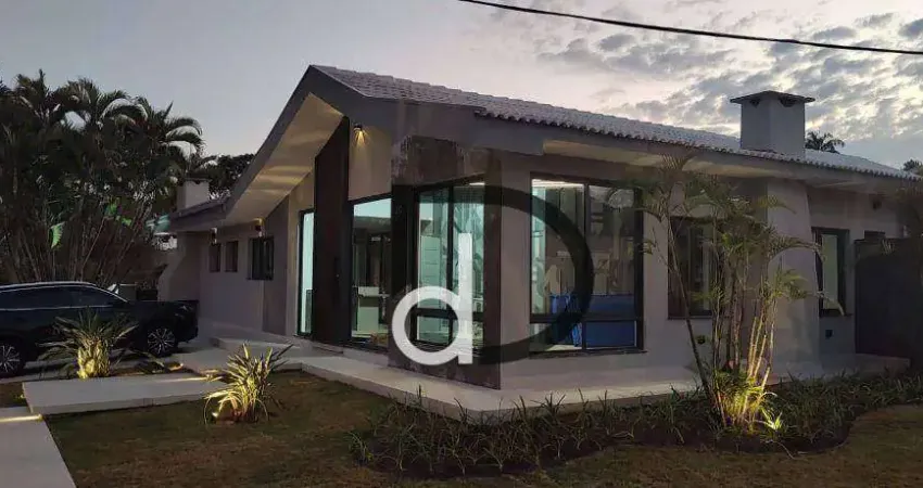 Casa moderna, térrea, com 3 suítes, lavabo, janelas blackout automatizada, ar condicionado em todos os cômodos, varanda de frente para piscina .