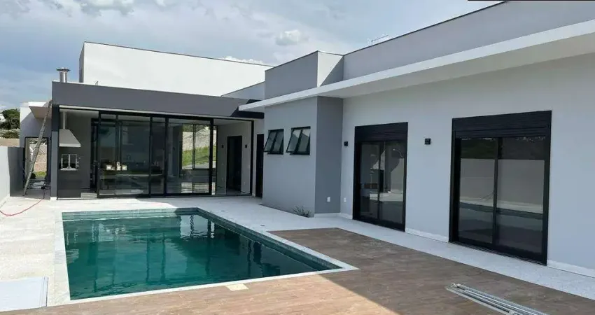 Casa térrea em estilo moderno com 302 m² de área construída em um terreno de 750m², contendo os seguintes ambientes: São 03 suítes em um projeto integrado é totalmente funcional para você poder receber muito bem amigos e familiares em um aconchegante espaço gourmet e com uma piscina incrível, cozinha com móveis planejados, bancada em granito com fogão de cooktop, área gourmet integrada aos demais ambientes e uma linda piscina, toda cercada por um jardim apaixonante, Sala de estar, sala de TV, lareira.