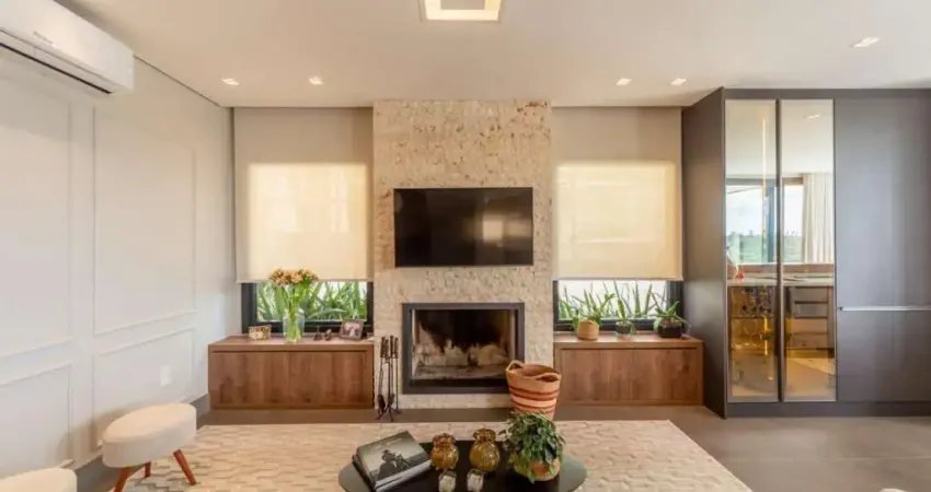 Uma casa luxuosa, com 3 suítes sendo 1 suíte master com banheira, e uma suíte no térreo podendo ser usada como escritório. Amplo living com espaço gourmet , cozinha com ilha integrado ao resto da casa. Lareira, lavabo, piscina e adega no subsolo. Casa finamente decorada e moderna, ficam todos os móveis fixos, 06 ar condicionados. Com uma vista perene para o vale!