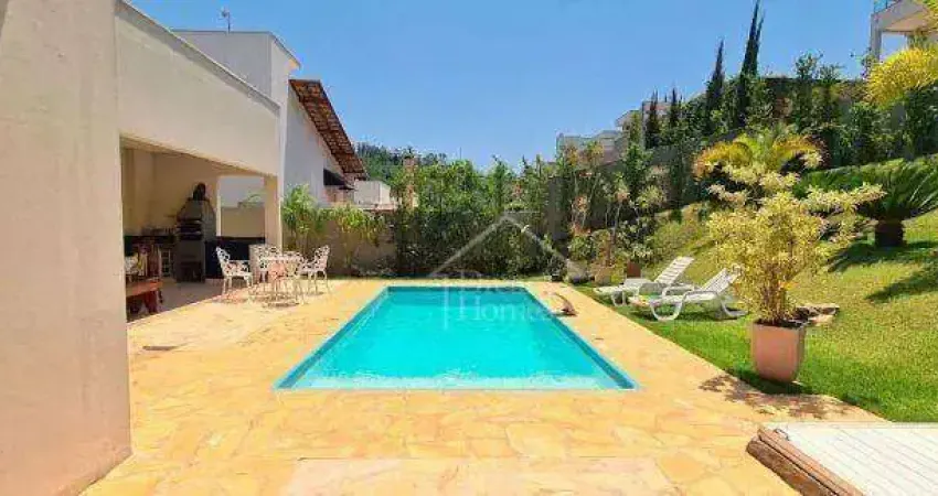 Projeto Moderno e Integrado. Este imóvel semi-térreo proporciona conforto e modernidade Área total de 480m² e construída de 220m². Com 3 Quartos com planejados, sendo 2 Suítes e na máster hidromassagem e sacada Cozinha planejada com balcão e cooktop Área de Serviço Lavabo Área de lazer composto pelo espaço gourmet, piscina e delicado paisagismo. Possui sistema de aquecimento solar em todos ambiente com exceção da lavanderia Estuda permuta por imóveis como por exemplo na região do panorama em Vinhedo. O condomínio abriga um total de 270 lotes e oferece uma infraestrutura completa com: Segurança 24hs e câmeras em todo perímetro Portaria blindada e automatizada 131 mil metros quadrados de mata preservada pelo Ibama 3 lagos de pesca 1 pista de cooper em volta de um dos lagos 2 saunas (seca e à vapor) 1 sala de descanso 1 sala de jogos 1 sala de fitness 1 salão de festa completo (forno de pizza, churrasqueira e cozinha industrial) 4 quiosques completos com freezer, churrasqueira, mesas 2 quadras de tênis 1 quadra de voley 1 piscina semi olímpica 1 campo de futebol. Além disso possui também ampla área verde para passeios com animais domésticos, uma feira noturna semanal e uma loja de conveniência, proporcionando uma gama de comodidades e atividades para seus moradores. Agende uma visita com nossos consultores!