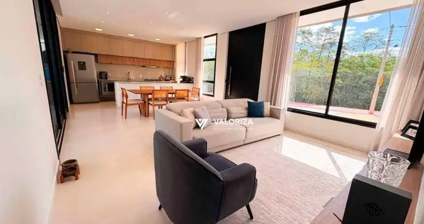 Acabamento interno: Piso de Porcelanato em todos os ambientes; Pias em mármore Travertino nos banheiros e lavabo; Porta Pivotante na cor preta; Janelas dos quartos com persianas integradas e automatizadas na cor preta; Preparação para ar-condicionado em todos os ambientes; Cozinha com acesso direto a área gourmet. Casa com pé direito alto de 3 metros, com ótima iluminação e ventilação natural. Iluminação decorativa noturna. Área gourmet com churrasqueira.