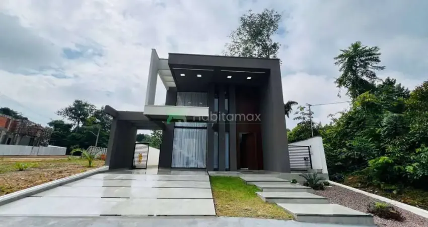 Casa com 275 m2 área privativa, são 385 m2 de área total, composta de 4 suítes sendo 1 com closet no andar superior, sala ampla para 2 ambientes integrada com a cozinha e espaço gourmert + área externa da piscina com cascata, área de serviço, 1 banheiro social, lavabo e dispensa e 4 vagas de garagens sendo 2 vagas cobertas.