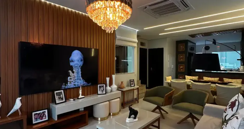 Sala de estar, TV e jantar integradas, com fluidez, conforto e presença.