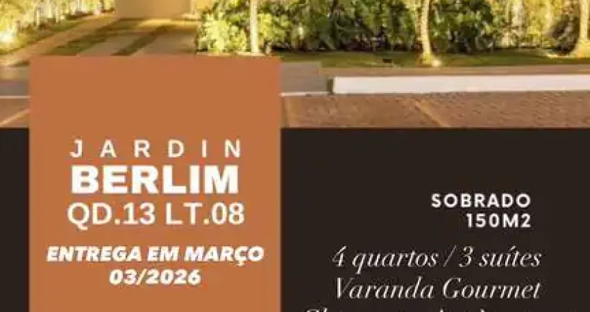 Enquanto a maioria dos imóveis no Jardins Berlim ainda está em construção, este sobrado será entregue AGORA em MARÇO – sem espera, sem obra, pronto para você mudar!