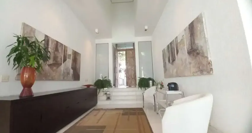 A casa conta com diversas comodidades, como elevador, sauna, salão de festa, ar condicionado, churrasqueira e espaço gourmet, além de 5 vagas de garagem.