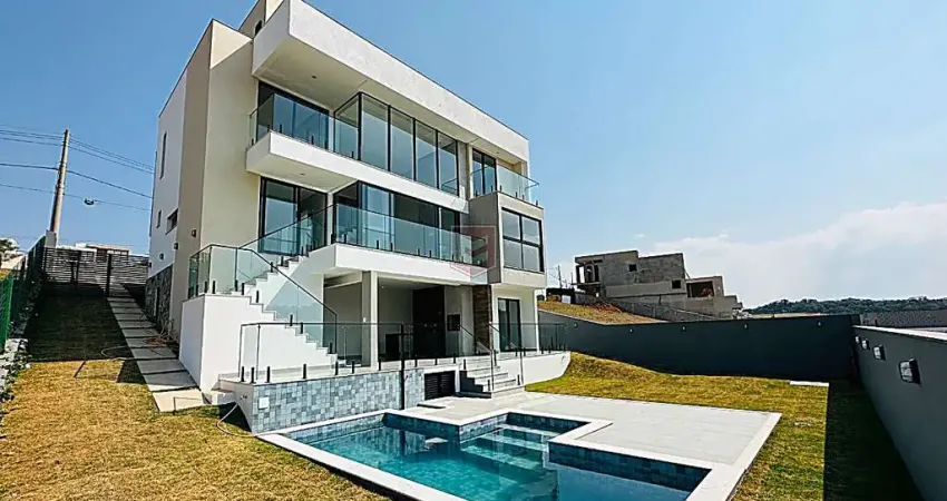 Casa com imponente fachada, localizada em posição privilegiada dentro do condomínio, com ambientes amplos, iluminados por luz natural e um visual exclusivo para a área de preservação. No primeiro pavimento, destaca-se a sala de estar com dois ambientes e lareira, integrada à cozinha e despensa, além de 1 dormitório que pode ser utilizado como escritório e 1 banheiro (link removido) andar superior, estão 3 suítes espaçosas, sendo 1 máster com closet, banheira de hidromassagem e varanda privativa, todas com preparação para ar-condicionado.Já no andar inferior, a casa surpreende com uma área de lazer completa, perfeita para receber amigos e família: espaço gourmet com churrasqueira a carvão, banheiro de apoio e quarto de despejo. Na área externa, um amplo quintal gramado e uma bela piscina com preparação para aquecimento e iluminação garantem momentos de lazer e descontração.