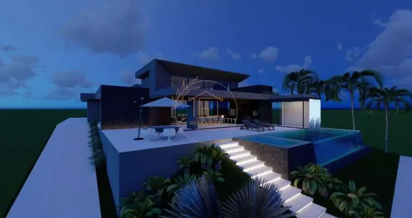 Localizada no ponto mais privilegiado do condominio, esta exuberante casa em construcao oferece o que ha de mais sofisticado em arquitetura, acabamento e lazer. E a unica casa a venda com vista panoramica para a lagoa, tornando-se uma raridade altamente desejada.
