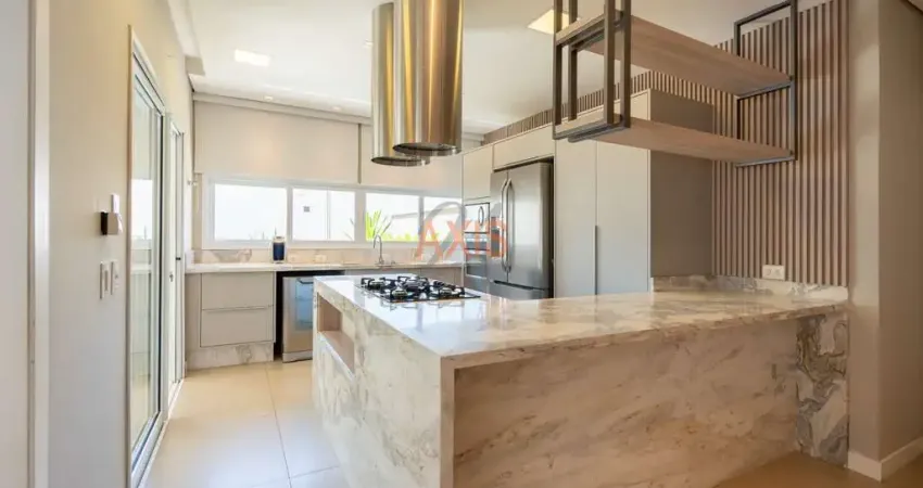 Com 312 m² de área privativa, a residência conta com quatro suítes no piso superior, sendo a master com closet e hidromassagem, além de ar-condicionado em todos os cômodos, piso aquecido em toda a casa, lareira ecológica e sistema de energia solar. A sala para dois ambientes é integrada à cozinha completa e à área gourmet com churrasqueira a carvão, proporcionando excelente espaço para receber amigos e familiares. O imóvel ainda dispõe de lavabo, área de serviço com armários, quintal e sacada com vista encantadora, além de duas vagas de garagem.