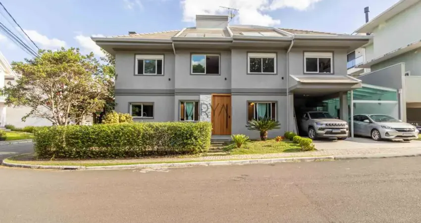 Residência de alto padrão em condomínio tranquilo, rodeado por área verde, com 264 m² privativos em terreno de esquina. A fachada imponente combina pedra moledo, porta em madeira maciça de peroba e fechadura eletrônica. O pavimento térreo reúne os ambientes sociais: sala de estar, sala de TV, cozinha planejada recém-inaugurada e área gourmet integrada com churrasqueira e forno de pizza. A planta dispõe de quatro dormitórios, sendo uma suíte com closet e banheiro totalmente reformado, além de escritório reservado. O amplo ático oferece espaço versátil para home theater, sala de jogos ou ambiente íntimo. O condomínio conta com academia, quadra poliesportiva, salão de festas, quiosques com churrasqueiras, playground e áreas arborizadas. Agende sua visita e conheça esta residência que une conforto, funcionalidade e privacidade.