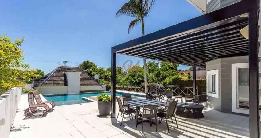 A residência possui quatro suítes espaçosas, todas bem iluminadas e ventiladas, além de um ático que pode ser usado como home office ou sala íntima. A área social integra salas amplas à cozinha e ao espaço gourmet recém-reformado, com churrasqueira e acesso ao quintal. A piscina aquecida com borda infinita é um destaque, proporcionando momentos de lazer e relaxamento.