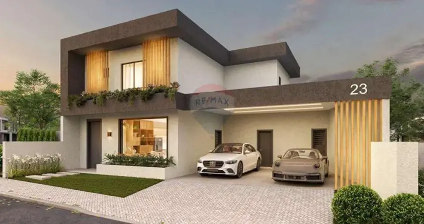 Maravilhosa casa de alto padrão em condomínio, com 4 quartos (3 suítes), 4 banheiros e 4 vagas de garagem.