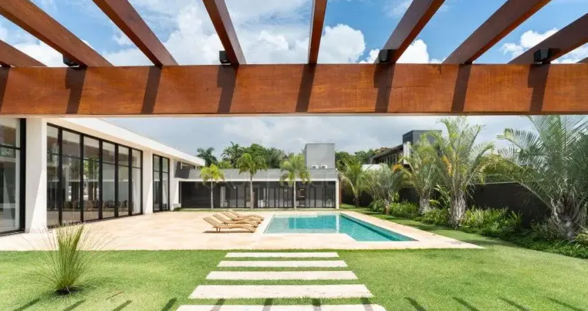 Casa Terrea no Condominio Recanto do Salto - 2.510,93m2 de terreno com 585,44m2 de area construida sendo 522,44m2 privativos. O imovel com arquitetura atemporal assinada por arquiteto renomado, tem a natureza valorizada com um lindo jardim, alem da composicao com elementos naturais e valorizacao da luz solar. Possui uma sala de entrada ampla integrada com o gourmet, pe direito alto todo envidracado, lavabo, sala intima, loucaria, cozinha equipada e reservada com 02 despensas. Area intima com 04 suites todas com closet e vista para piscina, roupeiro, piso em madeira anti-incendio, persianas eletricas. No SPA com sauna, wc, pergolado, revestimentos em pedra e madeira. Piscina em marmore aquecida, jardim, horta, cisterna, aquecimento solar, energia fotovoltaica, 04 vagas. Excelente localizacao no condominio.