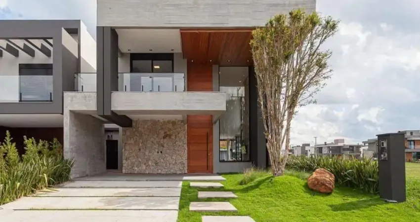 Excelente sobrado decorado com 240m² privativos e localização privilegiada à beira do lago apresentando living amplo para dois ambientes com pé direito duplo valorizado por esquadrias de PVC e sistema de climatização com ar condicionado em todos os cômodos. O imóvel dispõe de quatro suítes confortáveis e dois lavabos estrategicamente posicionados além de contar com móveis fixos de alto padrão e tecnologia de interruptores touch integrados. Na área externa a propriedade oferece uma piscina privativa que se integra perfeitamente ao cenário do lago proporcionando um ambiente completo com acabamentos de qualidade e ótima iluminação natural.