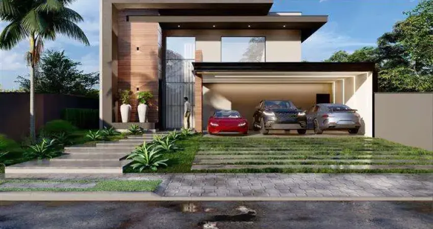 CONDOMINIO FIGUEIRA GARDEN, 4 suítes, salas de estar e jantar com pé direito duplo em conceito aberto e integrada a Cozinha e a Área Gourmet, Lavabos, Piscina, tubulação de água quente, caixas e passagens para instalação de Ar Condicionado, terreno 600,00m² com 299,00m² de Área Construída em fino acabamento.