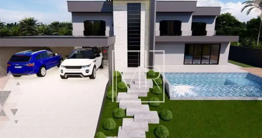 Sobrado com 4 suítes, salas de estar e jantar com pé direito duplo e em conceito aberto integrando a Cozinha e área Gourmet, lavabos, piscina, tubulação de água quente, caixas e passagens para instalação de Ar-Condicionado, terreno 600 m² com 252m² de Área Construída em fino acabamento.