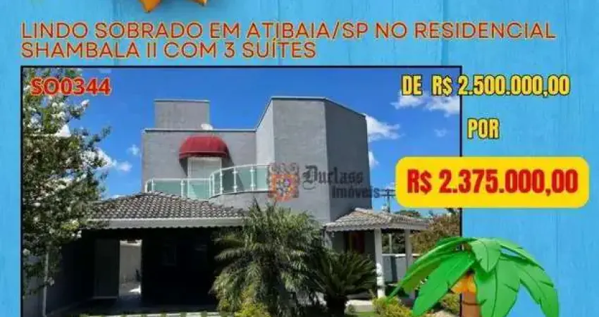 SOBRADO DE ALTO PADRÃO NO PARQUE RESIDENCIAL SHAMBALA II ATIBAIA/SP