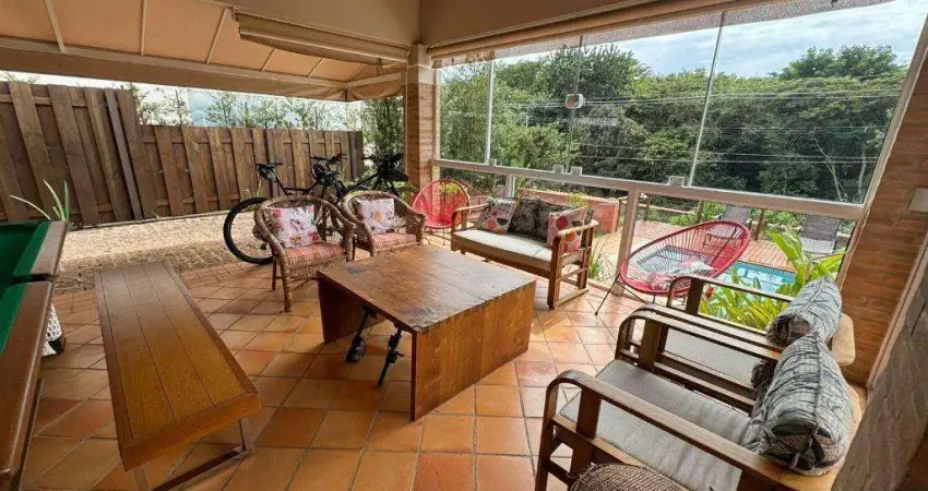 Ampla casa, arejada e aconchegante no estilo Inglês com jardim, garagem na lateral e amplo espaço gourmet fechado com vidros e um jardim com vista para a (link removido) térreo consta com uma suíte reversível, lavabo, escritório, sala com lareira, cozinha armários Kitchens, coifa, fogão, despensa, área de serviço, depósito, banheiro externo e quarto de serviço.