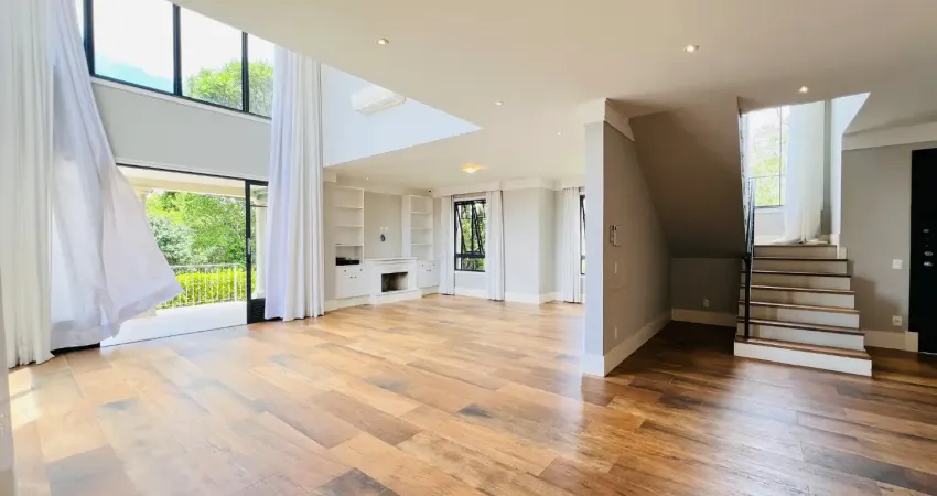 Ela oferece um estilo único, rústico, aconchegante e com sua planta muito bem distribuída entre ambientes internos integrados, com pé direito duplo, varanda, área de piscina e de churrasco, fogo de chão, paisagismo exuberante, cozinha completa em marcenaria, área de serviço com entrada independente; além de hall de distribuição no andar superior, com 4 suítes completas e com closet.