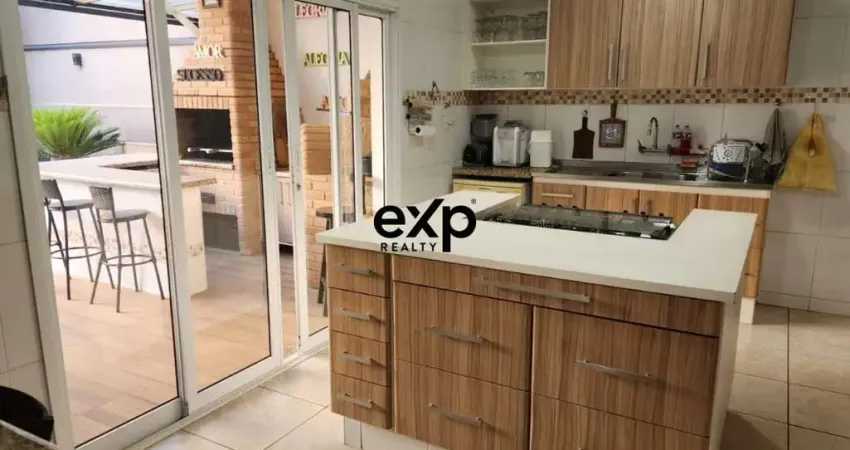 A cozinha americana, moderna e bem planejada, se conecta naturalmente à área gourmet.