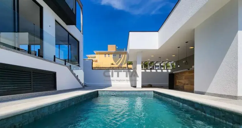 A área de lazer é independente da casa principal e conta com piscina e espaço gourmet, garantindo mais privacidade e comodidade para receber amigos e familiares.