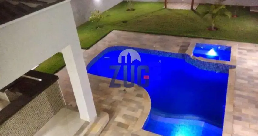 Casa com grande área construída, composta por 4 suítes, sendo 2 com sacada, dormitórios com piso em madeira, restante da casa em piso porcelanato, são 3 salas distintas sendo de estar com lareira de jantar e tv, escritório no piso inferior que pode ser revertido em quarto, cozinha planejada, garagem para 4 autos, piscina com iluminação e churrasqueira.