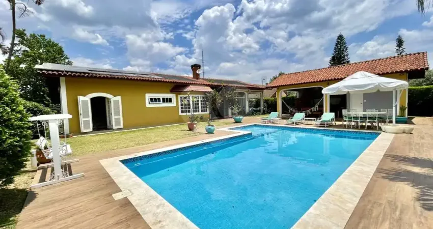 Linda casa- com ótimos acabamentos e manutenção primorosa. Ótima segurança e localização com muita tranquilidade, privacidade. Acesso por 2 ruas. Na frente pela Rua Hermes Salgado de Vasconcelos e Fundos com 2 portões pela Av. Ciro Saldanha de Castro. FRENTE - 3 acessos: social, garagem / serviço e lazer. FUNDOS - 2 acessos: lazer e serviço. Repleta de armários. Portas e janelas em madeira e vidro, com venezianas nos quartos. Pisos em tabuas largas, tacos, granito, porcelanato, porcelanato rústico, cerâmica, ardósia. Jardim com paisagismo formado, projeto de iluminação e laguinho na entrada. Frutíferas: manga, mexerica, laranja, limão, cana, carambola, jabuticaba, seriguela, acerola. Ensolarada, envidraçada, bem arejada e iluminada. Hall de entrada com porta social em madeira e vidro. Lavabo com espelho, bancada em madeira e cerâmica. Escada de alvenaria revestida de madeira, com guarda corpo em ferro e madeira. Hall íntimo com roupeiro e claraboia. 5 dormitórios sendo 2 suítes: 3 dorms com armários embutidos de marcenaria. A suíte master com ventilador, closet, armários e porta balcão voltada para o jardim com piscina. Uma das suítes ideal para hóspedes, ao lado da área de serviço. Banheiros com tampo em mármore, espelho, gabinetes e box de vidro e pastilhas, sendo a máster com hidro dupla. Family room com lareira e TV com bay window para o jardim e piscina. Living para 3 ambientes voltados para uma varanda fechada envidraçada, área gourmet piscina e jardim. Salas de jantar/ bar, estar e música. Cozinha com sala de almoço repleta de armários planejados, com bancada em “L' em granito, fogão 5 bocas, coifa, pia em inox e despensa com claraboia. Área de serviço aberta ensolarada e lavanderia fechada com tanque inox, bancada em granito e gabinetes. Suíte de serviço / hóspedes completa, com armários e box de vidro com detalhes em pastilhas. Escada de alvenaria de acesso à garagem, revestida em ardósia. Anexo gourmet com churrasqueira, fogão à lenha, forno de pizza, bancada em granito, cuba inox, gabinetes e despensa repleta de armários. Vestiário decorado com detalhes em pastilhas, bancada em madeira, espelho e box de vidro. Piscina de alvenaria 9m x 4,5m adulto e infantil, aquecida solar, iluminada, prainha, moldura em mármore, piso antiderrapante, ducha e solarium. Espaço horta fechado com canteiros e um grande depósito ideal para oficina, bicicletário com bancada, armários e gabinetes. Garagem para 5 vagas, sendo 3 cobertas. Energia fotovoltaica On Grid. Aquecimento: Solar com suporte elétrico. Abastecimento de água: Sabesp. Armazenamento: 3.000 litros. - Ref.: REO914794