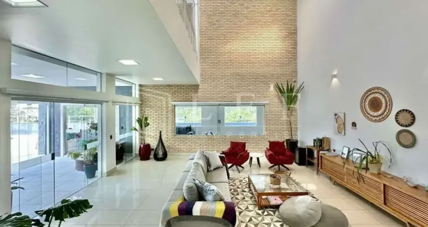 4 suítes com closets, repletas de armários, ar-condicionado Inverter Q e F, sendo 3 stes voltadas para grande terraço em ?L?, com guarda corpo de vidro e metal, sendo a master com grande closet. Sala de Jantar mais reservada, bar, estar e lareira. Cozinha com sala de almoço repleta de armários planejados espelhados, despensa, gabinetes, balcão, tampo em ?L? em granito black, 2 cubas inox, torneira gourmet, ilha com fogão cook top 5 bocas, forno elétrico Brastemp, geladeira Side by Side Brastemp Ative, micro-ondas Consul e lava louças Brastemp Ative. Piscina de alvenaria revestida em cerâmica, com formato orgânico, borda infinita, hidro para 6 pessoas, com cascata, iluminada, escada interna, prainha e casa de máquinas.