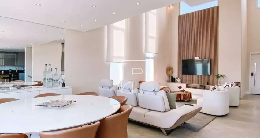 A área social foi projetada com excelente integração e funcionalidade. O living principal possui pé-direito duplo e acabamento em porcelanato Portobello, garantindo amplitude e iluminação natural de destaque. A cozinha é totalmente planejada, com ilha central em granito Preto São Gabriel e equipada com eletrodomésticos de alto desempenho cooktop, coifa, geladeira side by side 540 L, lava-louças, forno e micro-ondas.