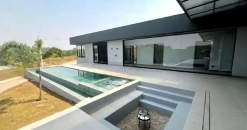 Imóvel moderno e auto sustentável com design Minimalista, onde o bloco principal possui um imponente Pavilhão com pé direito alto, todo desenvolvido no método construtivo Steel frame o qual proporciona o melhor isolamento térmico e acústico.
