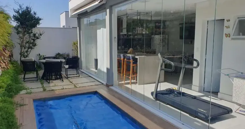 Ótimo sobrado em condomínio bem localizado, contendo 4 suítes, sendo uma no nível térreo todas com armários planejados; sala em dois ambientes com pé direito duplo em conceito abeto integrada à cozinha e área gourmet; escritório; cozinha planejada; despensa; área gourmet com churrasqueira; lavabo; escada com revestimento em porcelanato e guarda corpo em vidro temperado.