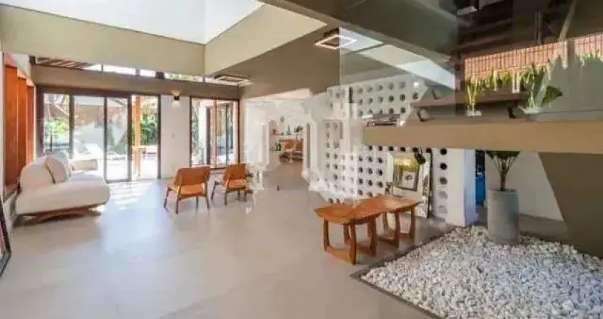 Porteira fechada. Completamente reformada para proprietários morarem. Ambientes totalmente integrados, com conceito minimalista. Projeto com muita luz natural na casa toda. Pé direito alto na área social e nos quartos. Sala de TV que flutua em um mezanino. Maravilhosa área de lazer, com belo paisagismo.