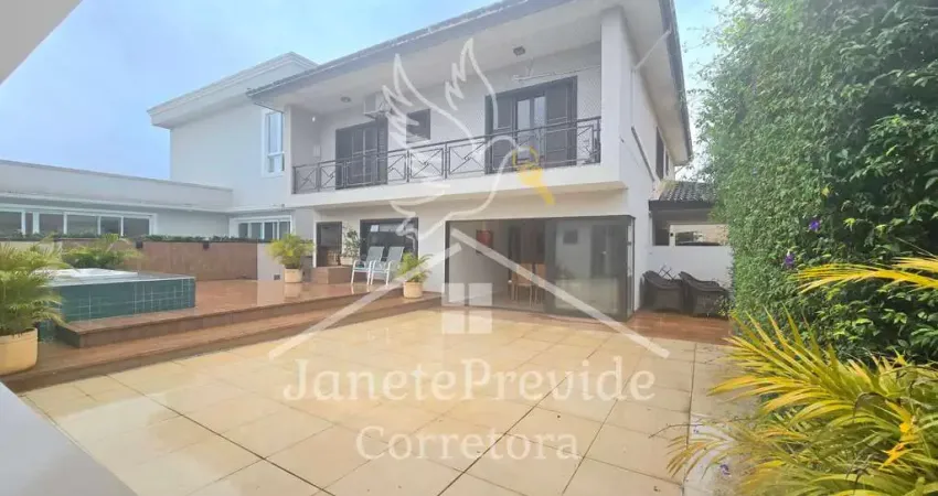 Ótima casa à venda, possui amplo hall de entrada, living espaçoso com 3 ambientes, sala de jantar, ampla copa-cozinha, no piso superior sala íntima/tv, 4 dormitórios sendo 2 suítes, a master com closet, edícula com churrasqueira, área de serviço e (link removido), quintal com Jacuzzi. Vaga para 3 carros. Esquadrias em alumínio, terreno plano, ótima localização no residencial.