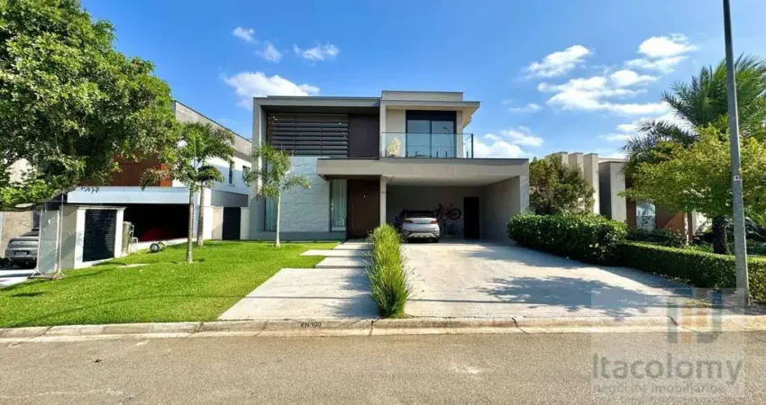 Casa totalmente mobiliada para venda no Condomínio Residencial Gênesis 2, em Alphaville. Conta com 322 m² de área útil e 516 m² de área total, 4 suítes, closet, amplo living com pé direito duplo e para vários ambientes como sala de estar, sala de jantar e sala de TV, lareira, lavabo, cozinha repleta de armários planejados, despensa, área de serviço com lavanderia, aquecimento solar, ar condicionado, depósito, escritório, varanda gourmet, churrasqueira e 2 vagas cobertas de garagem.