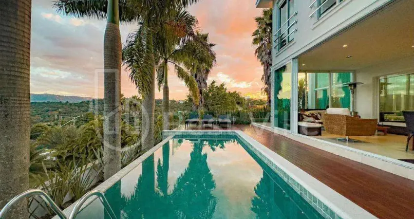 Casa de Alto Padrão no Residencial 11 Com Vista Panorâmica e Design ExclusivoLocalizada em um terreno de esquina na parte alta do condomínio, esta residência combina sofisticação, conforto e uma integração harmoniosa com a natureza. Ideal para quem busca exclusividade e uma infraestrutura de alto padrão.Características do Imóvel: Área Construída: 750 m² Terreno: 693 m² + 400 m² de área verde ajardinadaPiso Superior: 4 Suítes amplas: Com closets repletos de armários e piso em tacos de madeira;Suíte Master: Closet espaçoso e banheiro com mármore piguês, hidromassagem aquecida e dois (link removido) Suítes: Banheiros com acabamentos em mármore piguês, gabinetes e espelhos. Esquadrias em Alumínio GOLD: Com vidro verde temperado e persianas elétricas automatizadas. Sala Íntima: Com home theater. Copa de Apoio: Com pia e armários. Escada imponente: Em mármore crema marfil espanhol com pé direito (link removido) Térreo: Hall de entrada: Pé direito de 6 metros e porta em madeira maciça. Escritório: Planejado com móveis e piso em mármore crema marfil espanhol. Home Theater: Com móveis planejados e piso de madeira de demolição. Living amplo: Para diversos ambientes, com lareira a gás em mármore travertino e pé direito duplo de 6 metros. Copa/Cozinha Gourmet: Ilha central com cooktop, coifa e acabamentos em granito preto absoluto, planejada com armários. Espaço Gourmet: Integrado ao living, cozinha, jardim e piscina, com churrasqueira a gás, ilha central e armários planejados. Piscina: Com iluminação LED e vista para o lago. Suíte de hóspedes/(link removido) de Inverno e Piso Inferior: Sauna Úmida: Com banheiro independente. Salão de Jogos: Integrado ao SPA para 7 pessoas. Espaço de Repouso: Ao lado do (link removido)s e Acabamentos: Ar Condicionado: Em todos os ambientes. Iluminação Projetada: Assinada por Elizabeth Stein. Paisagismo: Jardim com árvores e plantas ornamentais. Sustentabilidade: Aquecimento solar com boiler de 500 litros e captação de água de chuva (5.000 litros). Garagem: Para 5 a 6 veículos, com depósito (link removido)ínio Residencial 11:Reconhecido pela segurança 24h e estrutura completa de lazer, com clube, trilhas e áreas verdes. Localização privilegiada em Alphaville, com fácil acesso a serviços e comércios da região.**Os preços, valores e características exibidos podem sofrer alterações sem aviso prévio. Todos os detalhes devem ser confirmados com o departamento comercial.**