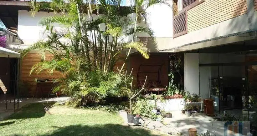 No Piso Superior: 2 suítes + 1 dormitório + 1 escritório. 1 Sala Intima + 1 banheiro. - No Piso Térreo: Sala de jantar com piso de tábuas largas em madeira maciça, pé direito duplo (cerca de 7 metros) abre para o hall superior; iluminada por dois panos de vidro na parte superior do ambiente, na parte inferior tem paredes de vidro voltadas para trecho ajardinado da própria casa. - Sala de estar (dividida em dois ambientes) em mármore, toda envidraçada, com portas de correr de vidro e total vista para o jardim - Sala de lareira em mármore com sofá em alvenaria e duas janelas ao lado da lareira - Lavabo em mármore - Cozinha e copa com porcelanato, janelas em alumínio anodizado, dois conjuntos separados de pias, instalação para lava-louças; a copa tem vista para o jardim - Área de serviço interna em porcelanato com armário, tanque e instalação para lavadora de roupas - Quarto e banheiro de empregada - Depósito A casa possui projeto bem elaborado e atemporal; executada com materiais de primeira linha, planta bem distribuída, projetos hidráulicos e elétricos.
