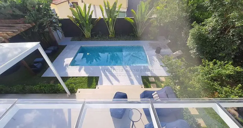 Esquina moderna, totalmente reformada, com espetacular área de lazer, excelente acabamento, 4 suítes, aquecimento solar em todos os ambientes, lindo paisagismo, piscina aquecida, área gourmet integrada com churrasqueira com pedra Vulcanica como na lareira, Alexa.
