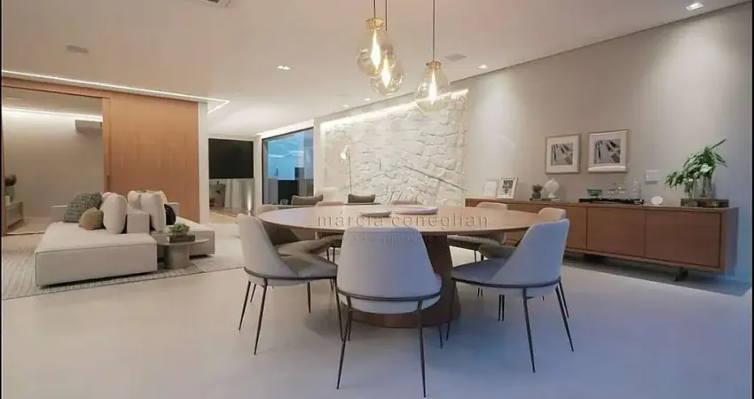 Construção de alto padrão arquitetura Rodrigo Latorre, desing de interiores Fernanda Calvo, área social integrada, 4 suítes sendo a master com 2 closets sr e sra. 2 banheiros, 2 duchas de teto, mobiliário e decoração desing da vila, automação com sistema de Wi-Fi por comando de voz, iluminação, temperatura, som, iluminação.