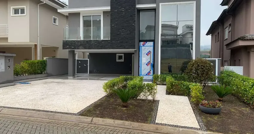 Casa nova com habite-se aprovado na prefeitura, com espaços voltados para a vista permanente em condomínio de alto padrão, com 4 suítes a master com closet, banheira com vista permanente e porta balcão automatizada, 1 com porta balcão automatizada e 1 com varanda. Sala de lareira, sala de TV, sala de jantar, escritório, espaço gourmet completo, dependência completa de empregada, telas em todas as portas e janelas, aquecimento solar, pele de vidro inteira na janela da frente, 2 vagas de garagem cobertas e 2 descobertas.