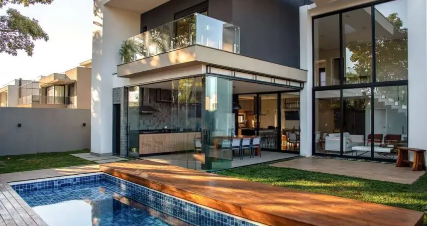 Área gourmet com churrasqueira à gás, piscina aquecida com deck retrátil de madeira.