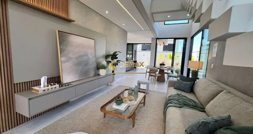 Sobrado novo à venda no Floradas do Paratehy, em Urbanova - São José dos Campos, com 244m² de construção em terreno de 250m². Conta com 4 suítes, sendo uma no térreo e uma máster com closet e sacada. A sala possui pé-direito duplo, integrada à cozinha planejada e área gourmet.